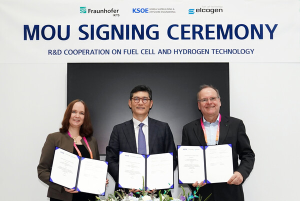 이와 함께 한국조선해양은 프라운호퍼의 수전해 기술과 엘코젠의 연료전지의 핵심부품 제조 능력을 활용, 친환경 수소를 생산하는 기술도 확보할 예정이다.