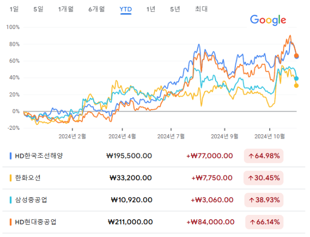 - [조호진의 PICK] HD현대중·한화오션·삼성중 빅3, 트럼프 정책에 주가 고공행진?