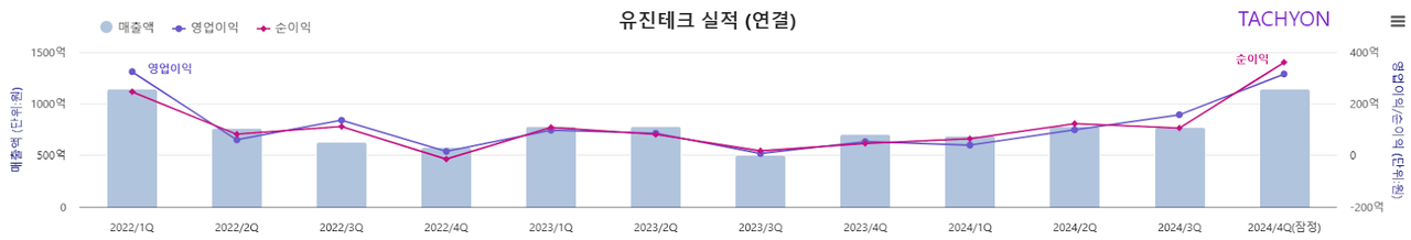 [데일리인베스트=조호진 타키온뉴스 대표] 유진테크가 지난해 호실적을 기록했다. 유진테크는 2024년에 매출은 3380억원에, 영업이익은 612억원을 기록했다고 지난 18일 공시했다. 전년 대비 각각 22.2%, 151.5% 성장했다. 또 유진테크는 주당 230원을 배당하기로 했다. 배당 총액은 51억1662만3700원이다.